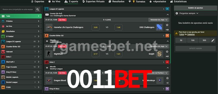 O 0011Bet oferece uma grande seleção de opções de apostas em e-sports com probabilidades competitivas